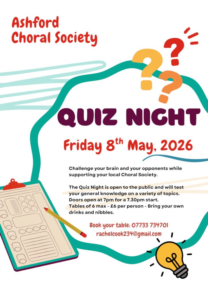 Quiz Night 2026 Click on the image to download the Quiz Night poster To book your place email rachelcook234@gmail.comor phone 07733 734701